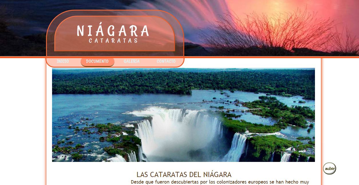 Página informativa sobre las cataratas del Niágara.